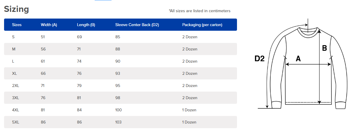 • XXS, XS, Small, Medium, Large, X Large, 2X Large, 3X Large, 4X Large, 5X Large